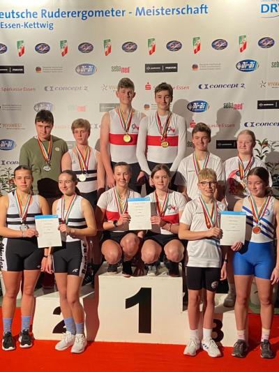 Die THG-Halle in Essen-Kettwig war am Sonntag zum wiederholten Male Austragungsort der Deutschen Meisterschaften auf dem Ruderergometer. „Endlich wieder Live und Kampf Seite an Seite“ war ein oft gehörtes Zitat unter den 651 Startern des Events, konnten doch die Veranstaltungen in den beiden Vorjahren nur Online stattfinden. Im großen Starterfeld waren auch 8 Aktive des Ruderverbandes Sachsen- Anhalt, sieben Bernburger und ein Weißenfelser, welche allesamt mindestens mit einer Medaille die Rückreise antreten konnten.Bei den Mädchen in der AK 13 konnte Paula Maria Buch vom Bernburger RC ihren Vorjahrestitel erfolgreich verteidigen und blieb als einzige Starterin unter der 4 Minuten Marke. Die Plätze 7 und 10 erruderten in der AK 14 weiblich Luise Wartmann und Charlotte Handt, ebenfalls vom Bernburger Ruderclub. Ein Highlight des Tages wurde das Rennen der 14 jährigen Jungen. Bernburgs Trainer Maik Wartmann hatte hier schon im Vorfeld mit Medaillen seiner beiden Schützlinge Antony Grube und Jakob Kannenberg geliebäugelt. Beide lieferten sich bis auf die imaginäre Ziellinie ein spannendes Duell und ließen sich auch von den zwischenzeitlichen Führungen anderer Wettkämpfer nicht von ihren durch den Trainer erteilten Marschrouten abbringen. Am Ende trennten den Sieger Antony und den Zweitplatzierten Jakob nur 0,1 sec und der zweite Deutsche Meistertitel für den Bernburger Ruderclub war eingefahren. In der gemischten Staffel der AK 13/14 brannten die Schützlinge dann gemeinsam ein Feuerwerk ab und holten überlegen den Sieg vor der Konkurrenz. Ebenfalls über den Titel Deutscher Ruderergometer-Meister konnte sich Gerhard Hartkopf bei den Masters der AK I freuen. Ronald Beer vom Weißenfelser Ruderverein startete bei den Masters C und konnte seine bei den Mitteldeutschen Meisterschaften erzielte Bestzeit nochmals steigern. Nach 3:03 Min hatte der das Ziel erreicht und lag nur 0,6 Sekunden hinter dem Sieger aus Bad Mergentheim. Den Medaillensatz für die Bernburger komplettierte Steffen Planer bei den Masters E mit dem Gewinn der Bronzemedaille.